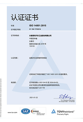 ISO 14001 認證證書